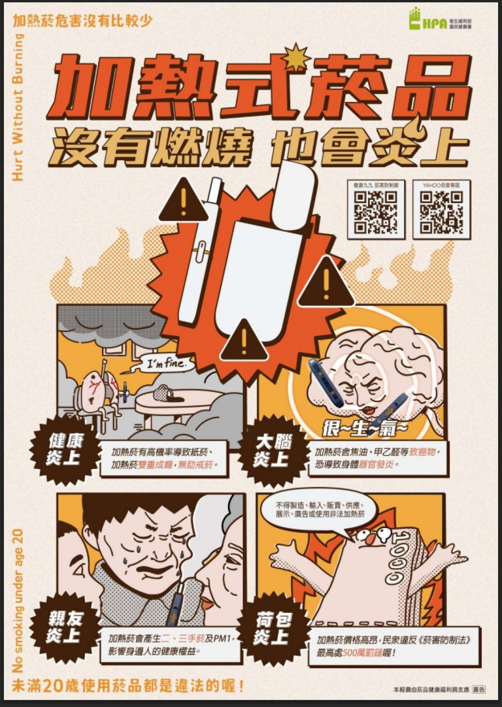 中央與地方政府合作將執行稽查專案,包含源頭管理、販售通路(包含禁止販賣給孕婦及未滿20歲之青少年)並加強禁止青少年違法使用加熱菸。 |