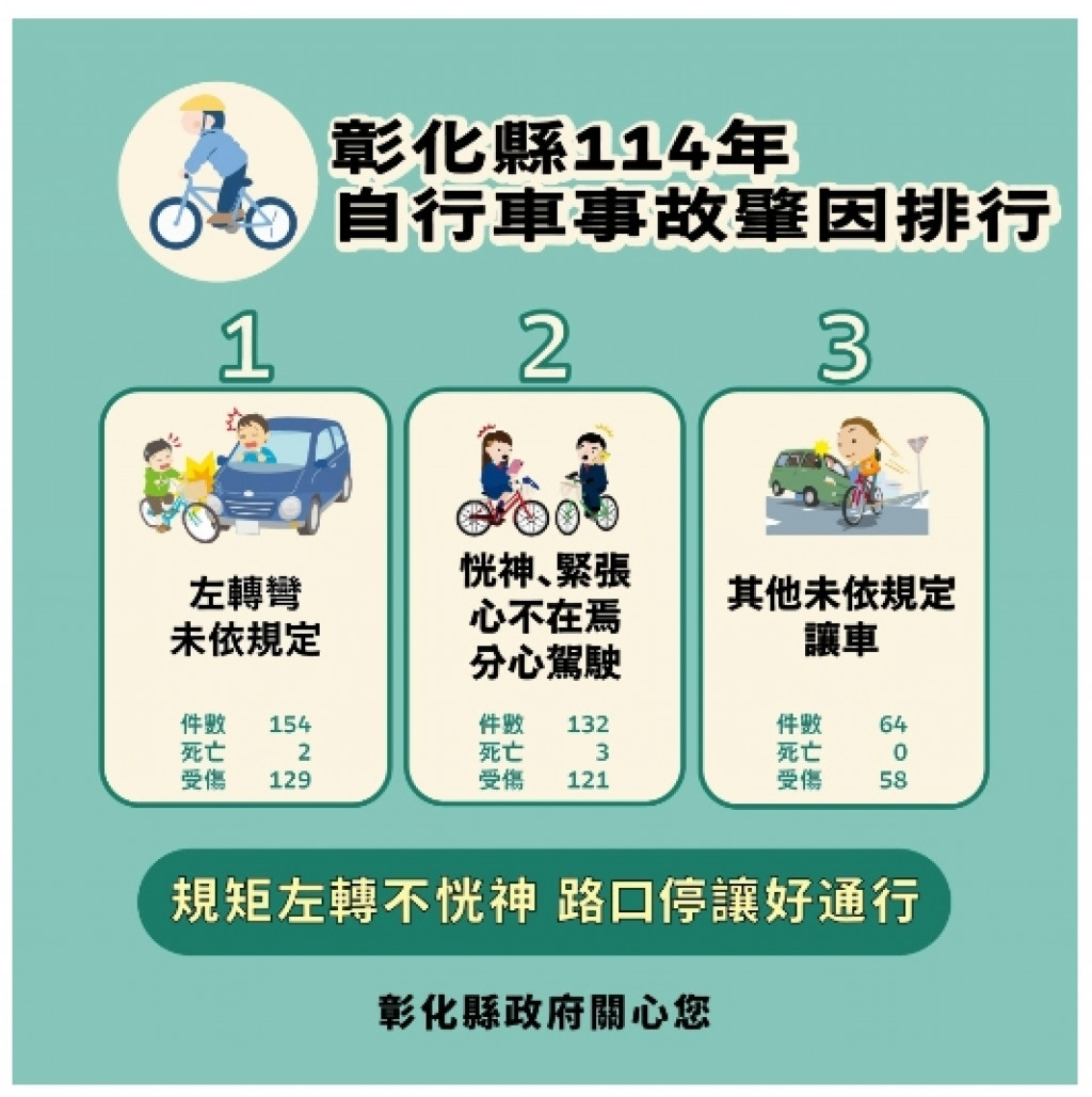 騎乘單車不分心,左轉留意守規矩。